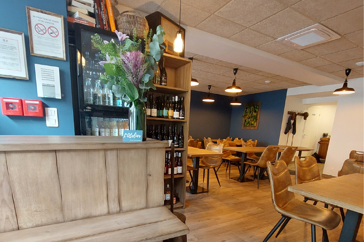 L'équipe de Boulfray La Flèche a réalisé les peintures intérieures de ce restaurant de Précigné en utilisant une peinture biossourcée Algo et a assuré la pose collée du revêtement de sol en lames.