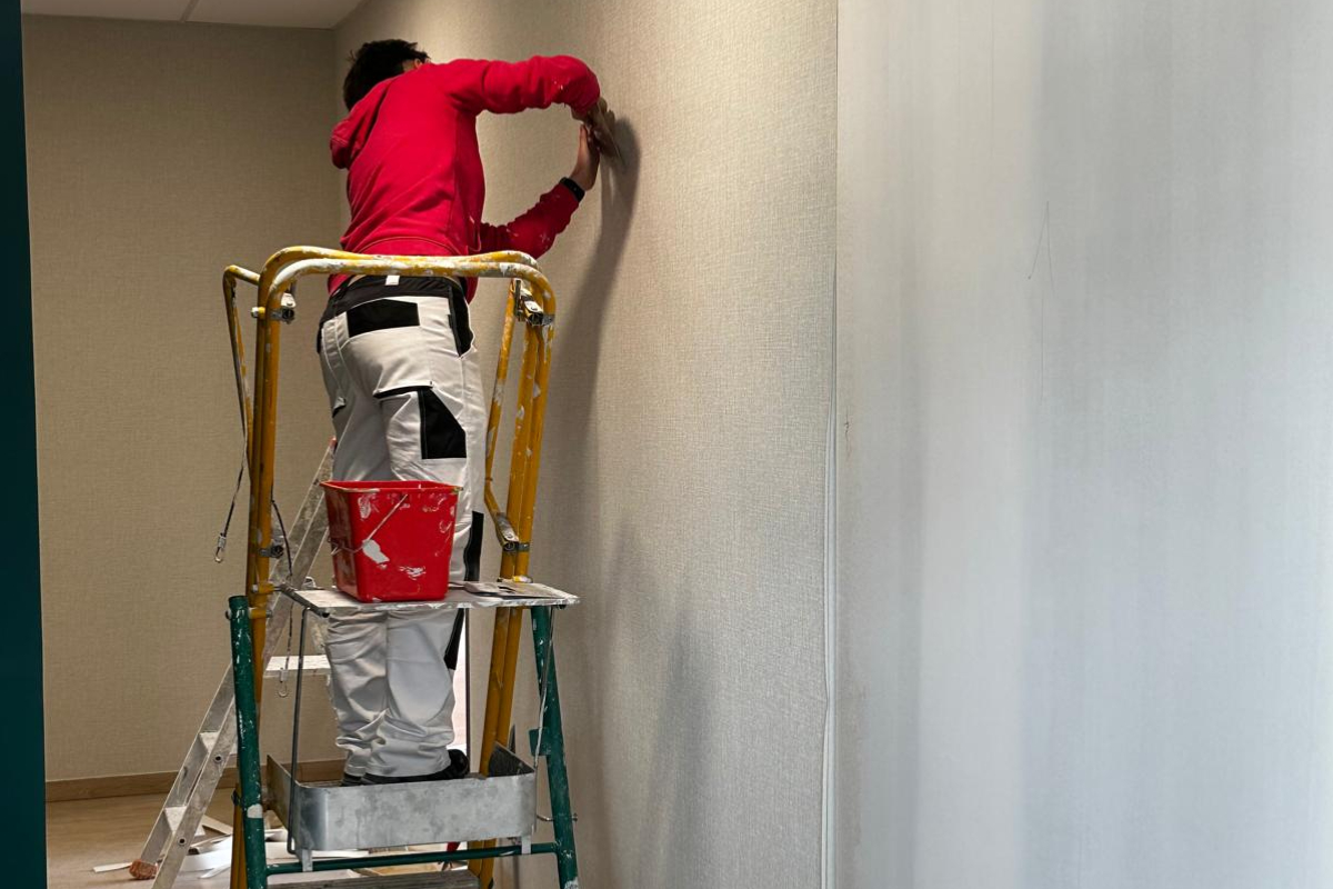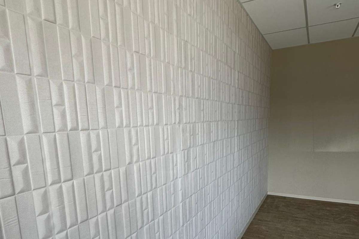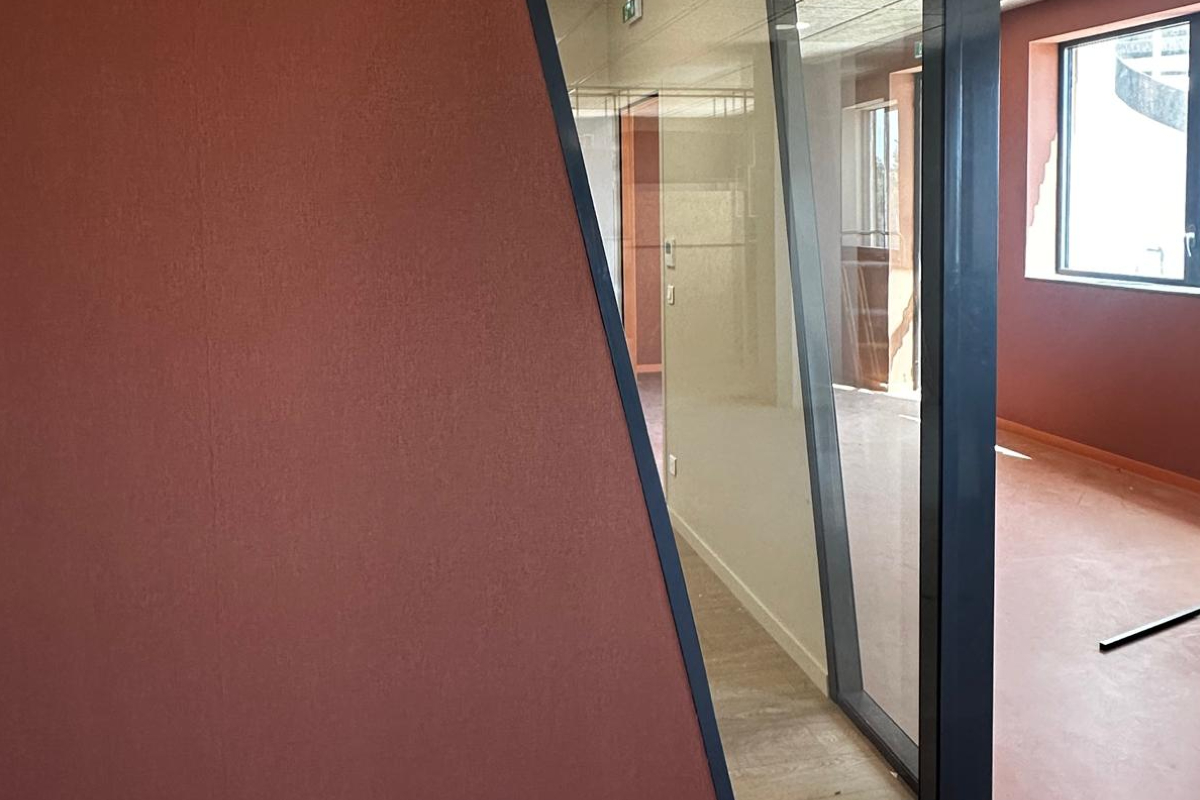 Les compagnons du Groupe Boulfray ont réalisé les travaux de pose de revêtement mural et de revêtement mural 3D pour les bureaux de la plateforme logistique Argan à Louailles 72.
