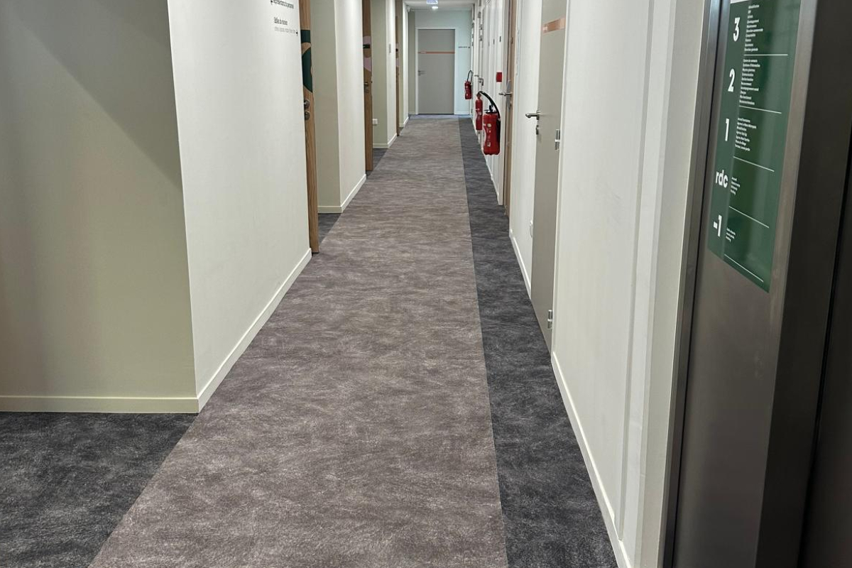 Les équipes du Groupe Boulfray ont réalisé les travaux de pose de revêtements de sols des locaux du nouveau Siège social Sarthe Habitat, piloté par l’entreprise GSE.