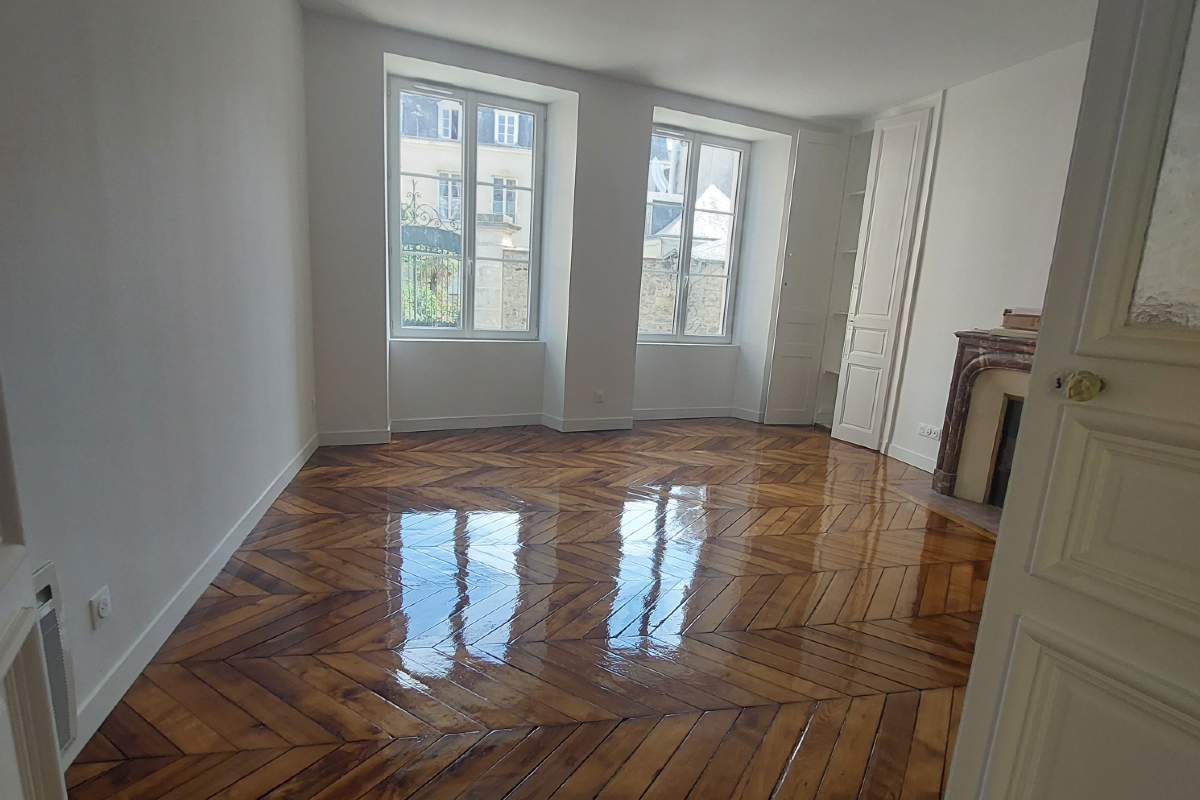 Notre équipe a réalisé la vitrification d'un parquet ancien en point de Hongrie. Nos spécialistes maîtrisent ce type d'opération sur des parquets anciens pour lesquels un soin particulier doit être apporté pour les protéger tout en conservant leur authenticité.
